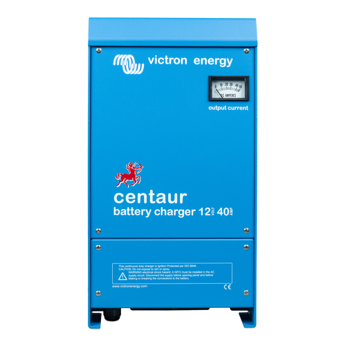 The Victron Centaur Charger; 12V 40 Amp - 3 Outlets delivers uncompromising quality, designed for durability in adverse environments, featuring an aluminium epoxy powder-coated case with stainless steel fixings and a drip shield. They span 12V and 24V models, varying from 16A to 100A, catering to a wide spectrum of applications. Key features include: